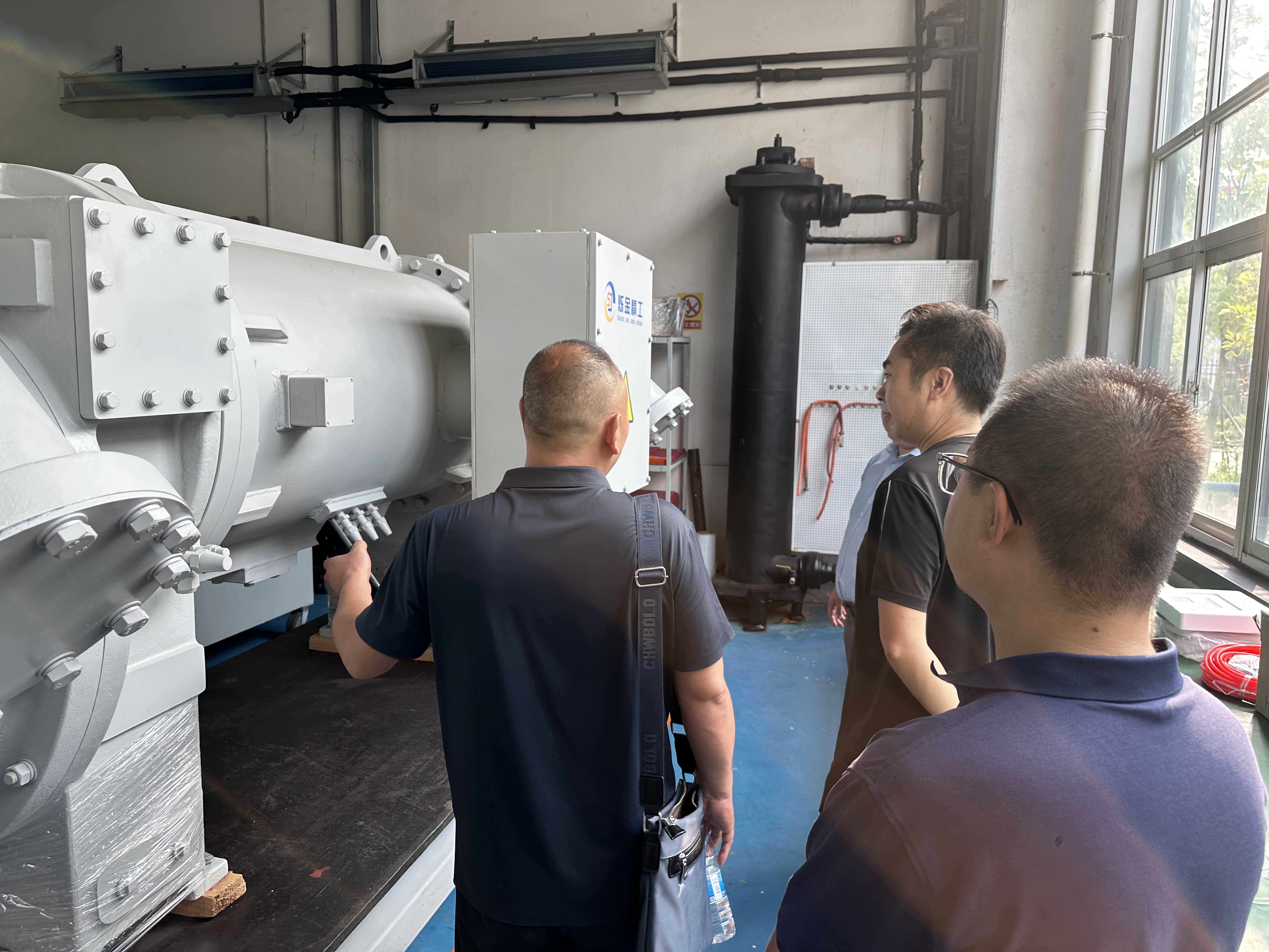 2023年9月11日忠兵赫鼎能源科技有限公司总经理王总莅临我司参观指导,董事长王志强、总经理王进杰、销售部长李玉柱陪同王总一行参观了我司在线香蕉视频在观看机组生产、共同了解香蕉视频APP下载安装研发创造和检测实力。