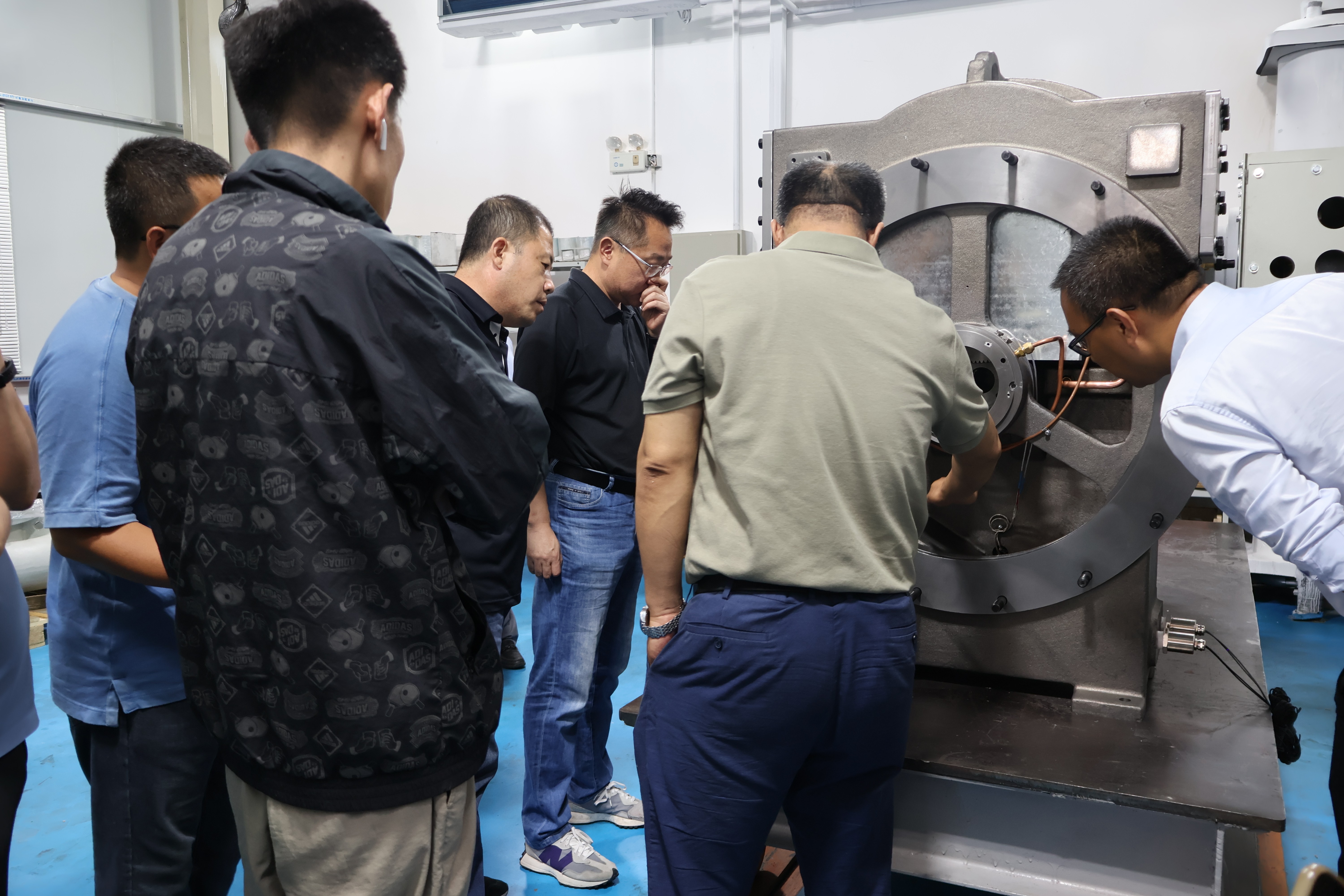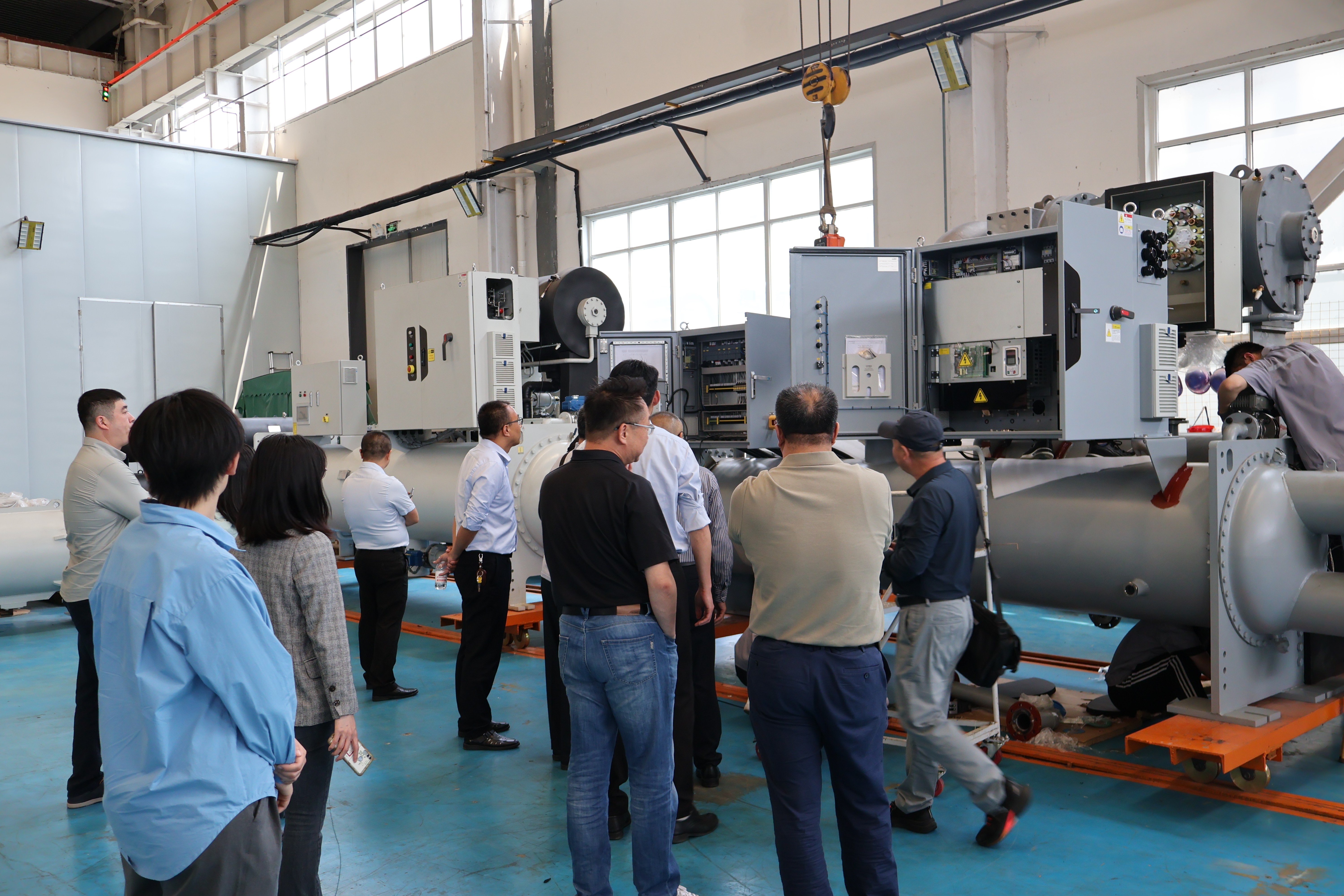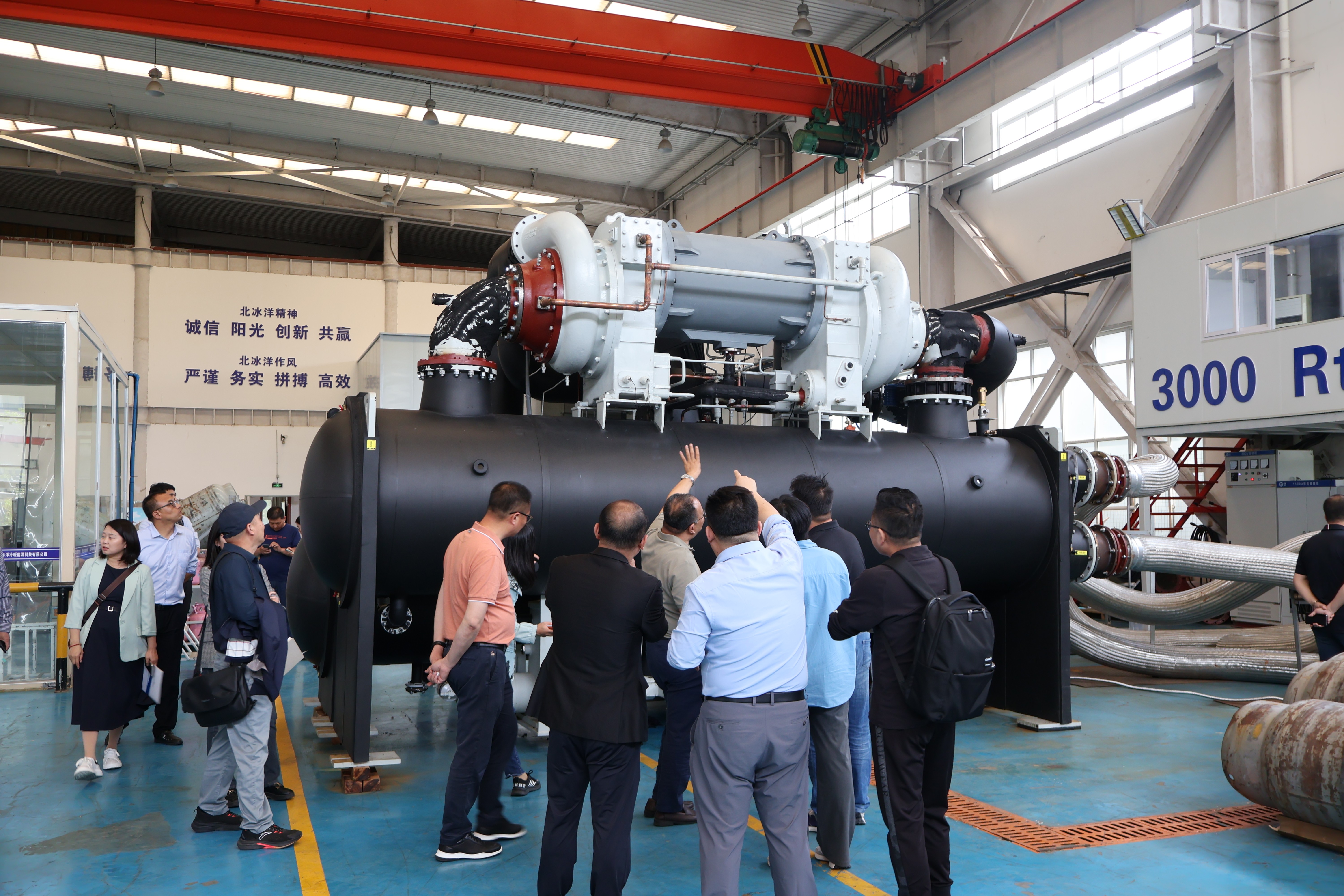 会议结束后,各领导一同移步至香蕉视频APP下载安装车间参观我司自主研发的离心式压缩机机组。机组的热水出水温度达85℃,压缩机定制化设计,自由化组合,利用不同叶轮、齿数比搭配,提供最优方案满足应用场景多样化需求,公司拥有280KW风冷测试台、500RT及3000RT水冷试验台,均通过国家检验检测中心认证合格。目前青岛香蕉视频APP下载安装科技已参与离心式制冷剂压缩机标准起草编辑工作;香蕉视频APP下载安装作为新国在线香蕉视频在观看牌,是国内可自主研发生产离心压缩机第四家、大压比离心热泵国内第一家,也是行业第一家!