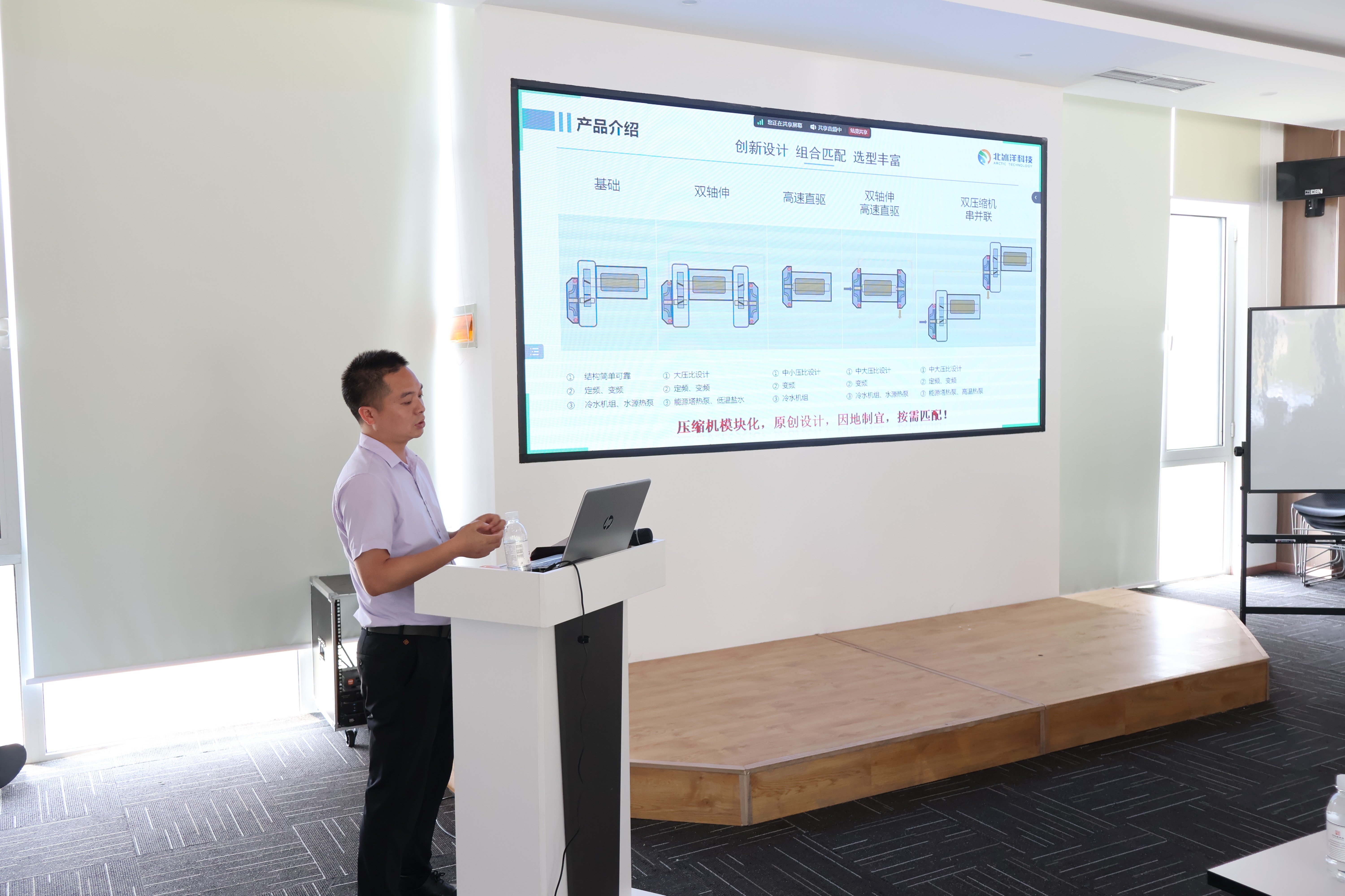 我司副总经理兼技术总监赵书福以及研发部部长苏从兵为大家充分讲解了中央空调行业知识、制冷基础知识以及香蕉视频APP下载安装北斗系列离心式压缩机的核心技术。会后苏部长对参会人员提出的问题进行了详细的解答,大家在沟通中进行了广泛的交流和学习,现场气氛轻松活跃。